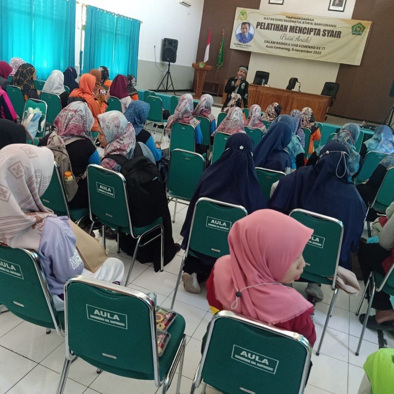 BANYUWANGINEWS - Pimpinan Daerah Ikatan Guru Roudlotul Athfal (IGRA) Kabupaten Banyuwangi mengadakan pelatihan menulis syair/puisi anak, bagi puluhan orang guru, bertempat di aula Kantor Kementerian Agama Kabupaten Banyuwangi, Sabtu (05/11/2022).