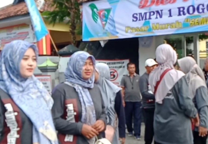 Banyuwanginewsa - Dalam rangka dies natalis ke-46 tahun 2023, SMPN 1 Rogojampi menggelar bermacam kegiatan yang bersifat sosial, diantaranya bazar, santunan anak yatim dan dhuafa, serta pasar murah hingga jalan sehat untuk menumbuhkan rasa kepedulian dan sifat kewirausahaan bagi para siswanya.